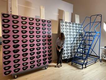 Jenna Shaw onsite at Musée national des beaux-arts in Québec City installing artwork from the collection of the Hirshhorn Museum and Sculpture Garden, 2022.